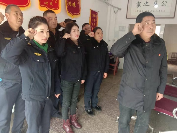 車(chē)隊(duì)長(zhǎng)帶領(lǐng)駕駛員進(jìn)行宣誓